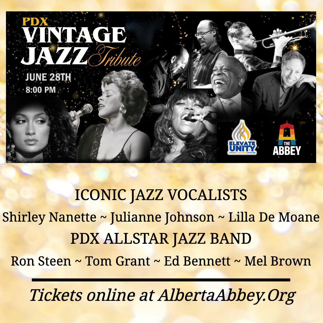 Featuring Portland’s own Jazz Hall of Fame vocalists: Shirley Nanette, Julianne Johnson, and Lilla De Moane, backed by the PDX Jazz Allstar Band with: